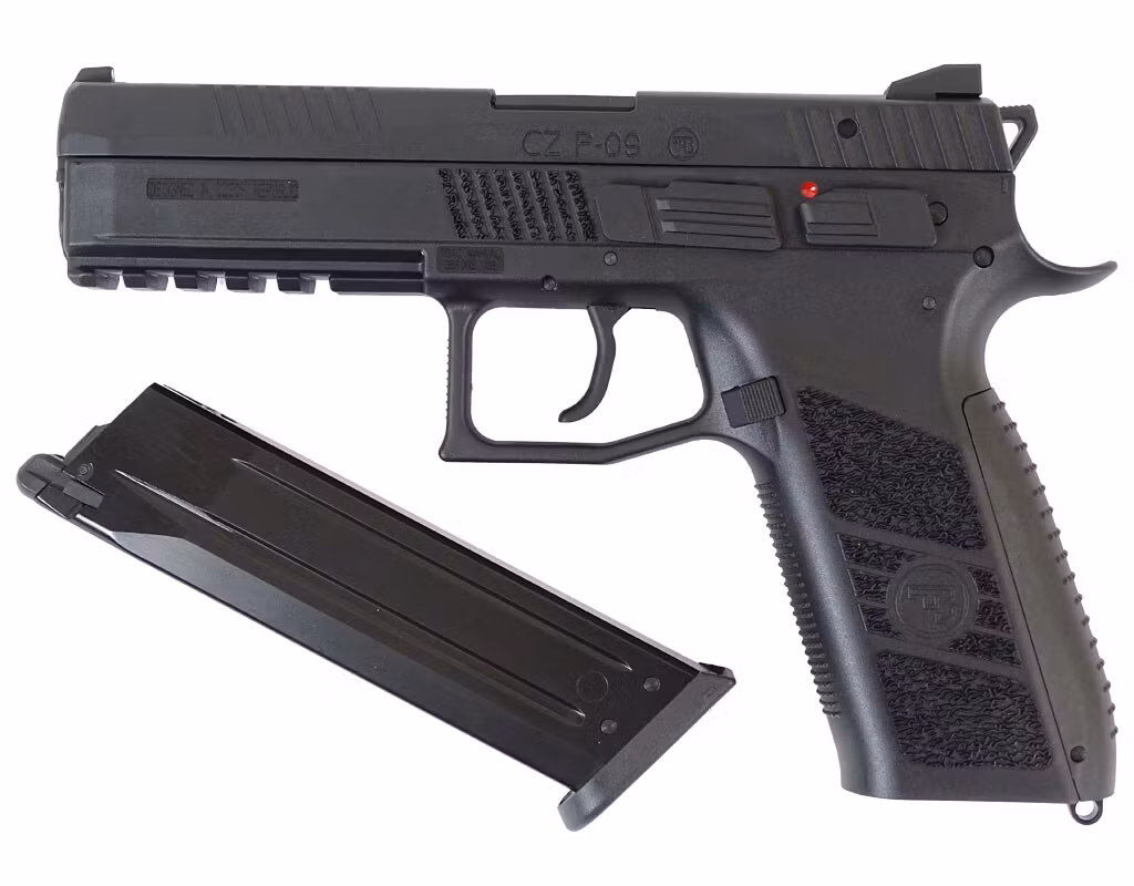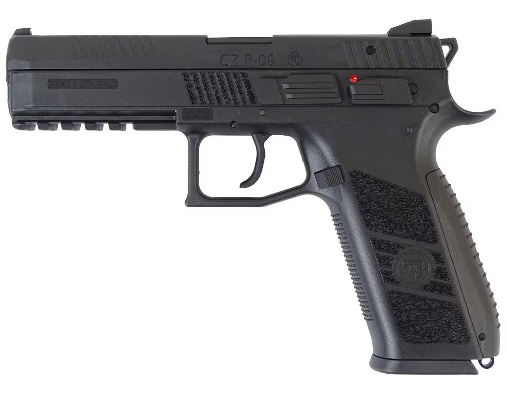 In the P-09, the barrel and trigger are made of metal, while the framework, slide and other controls are made of durable and sturdy plastic. The ergonomic, textured grip allows the shooter to comfortably position their hands on the pistol, even when wearing thick gloves