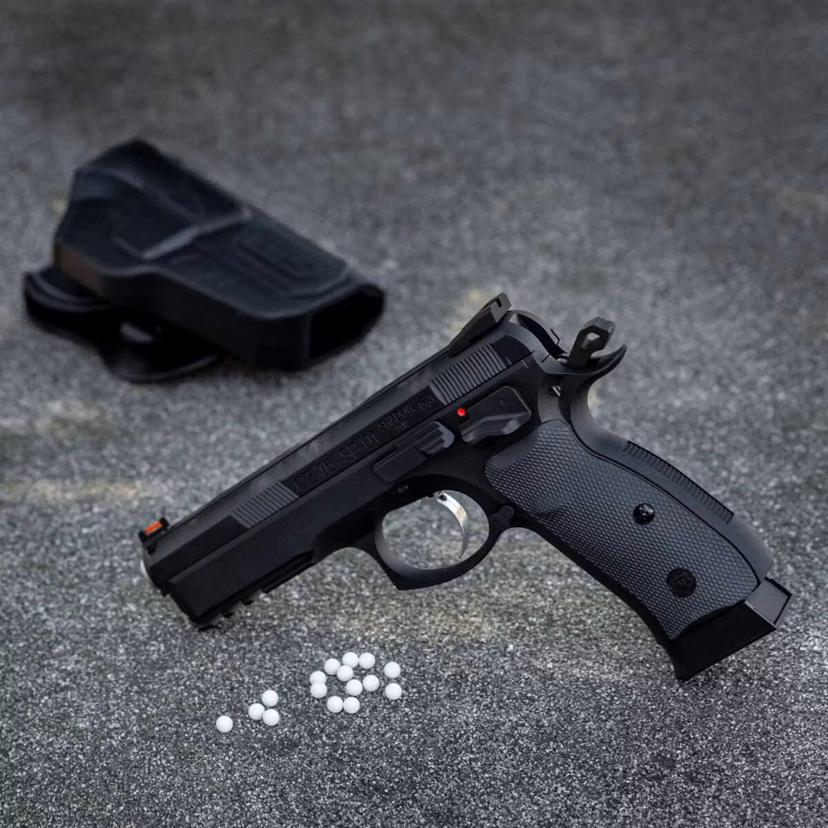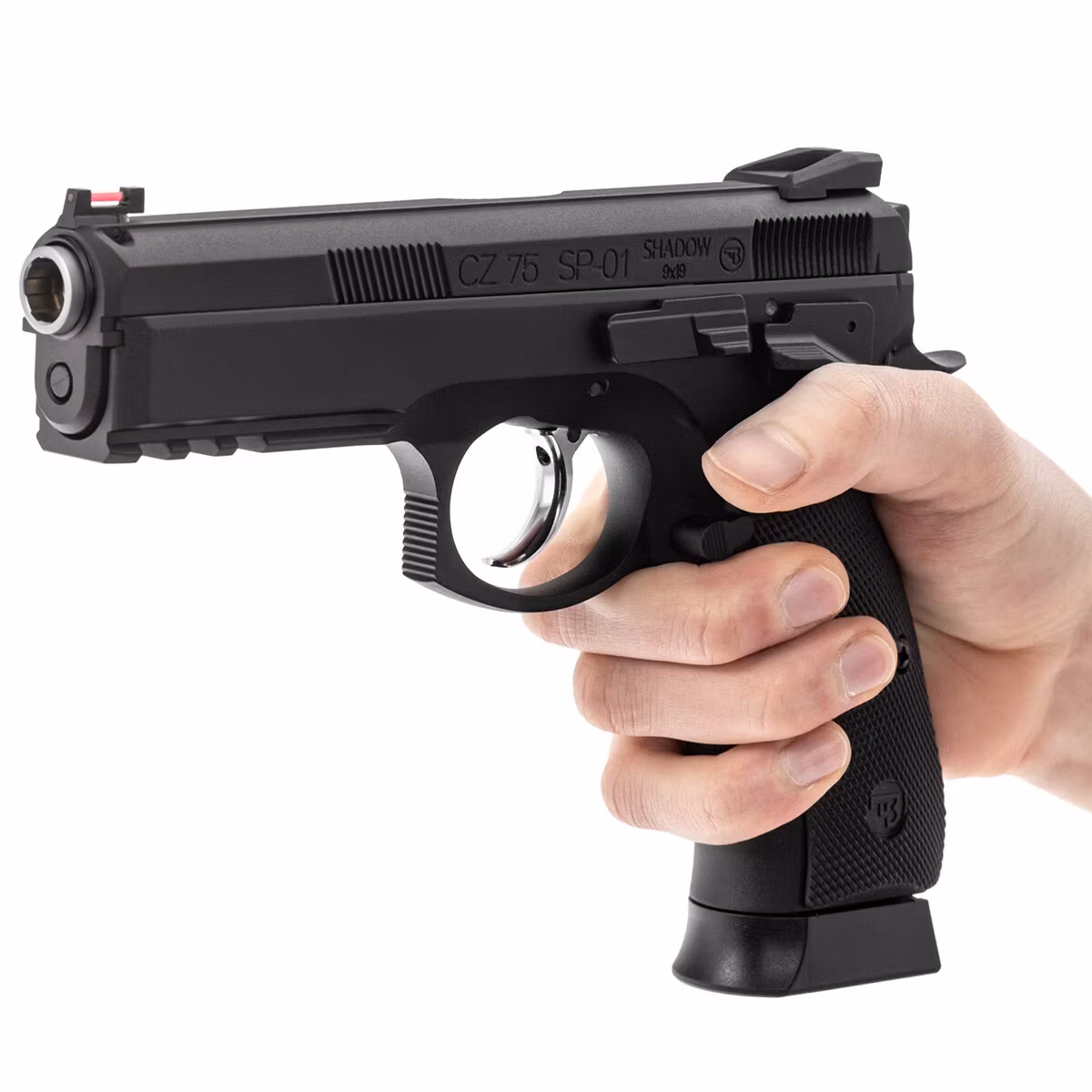 Gas replica of the CZ SP-01 Shadow pistol mostly made of metal. Only the pistol grip scales are made of rubberized plastic. Other elements such as the slide, frame, outer barrel, all controls, and the magazine are made of metal.