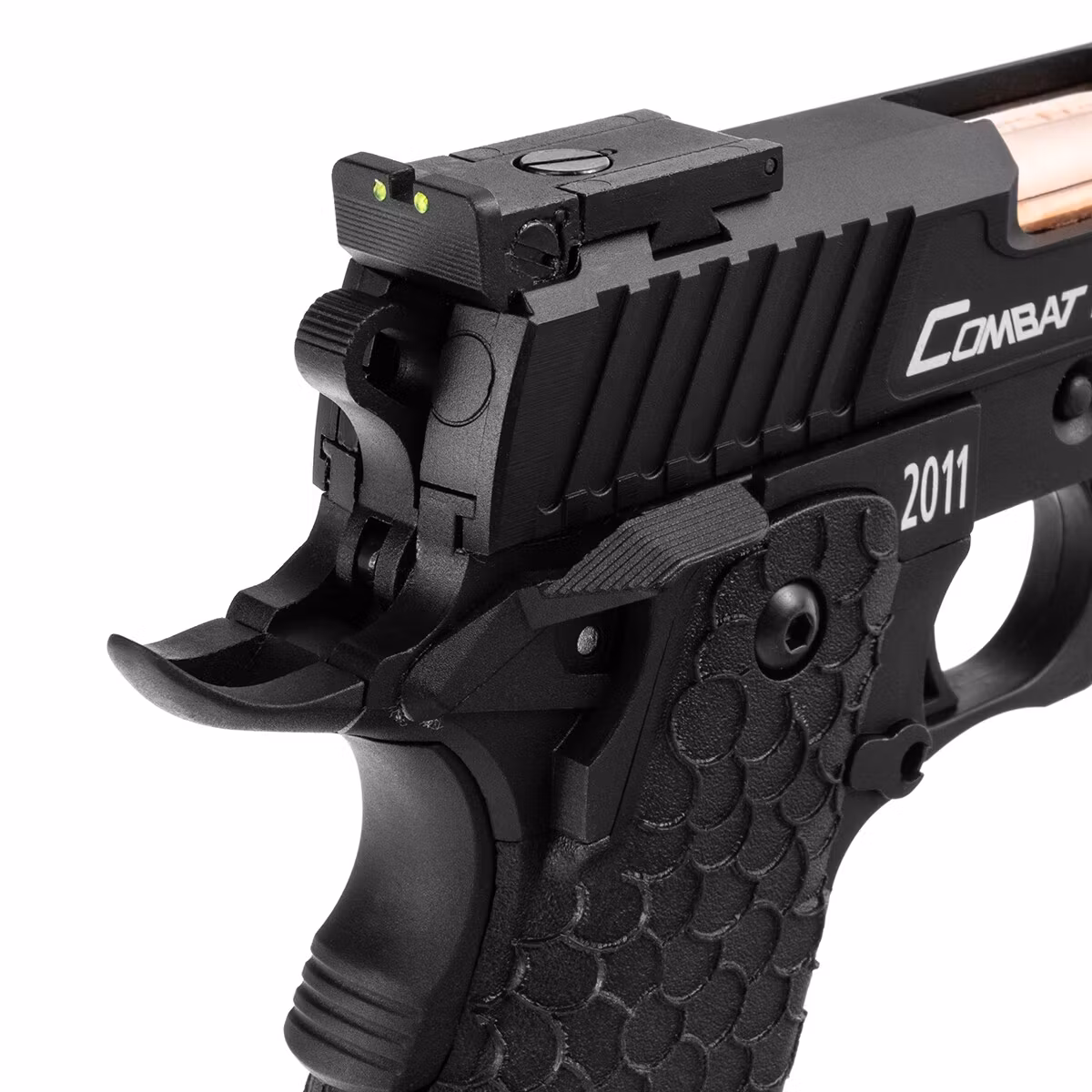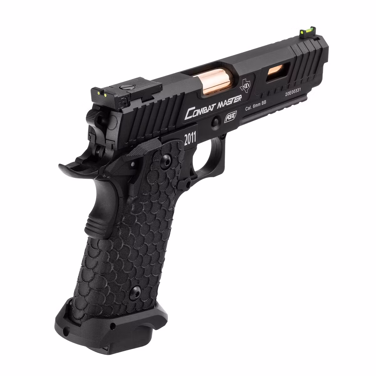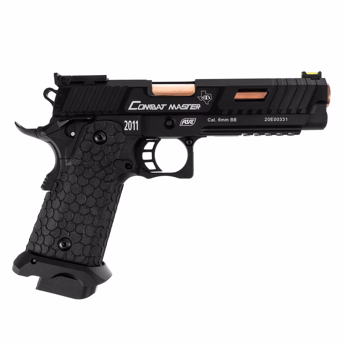 Licensed gas replica of Combat Master pistols. The replica is based on the classic M1911 model design and has undergone a series of modifications typical for firearms used in modern sport shooting.
