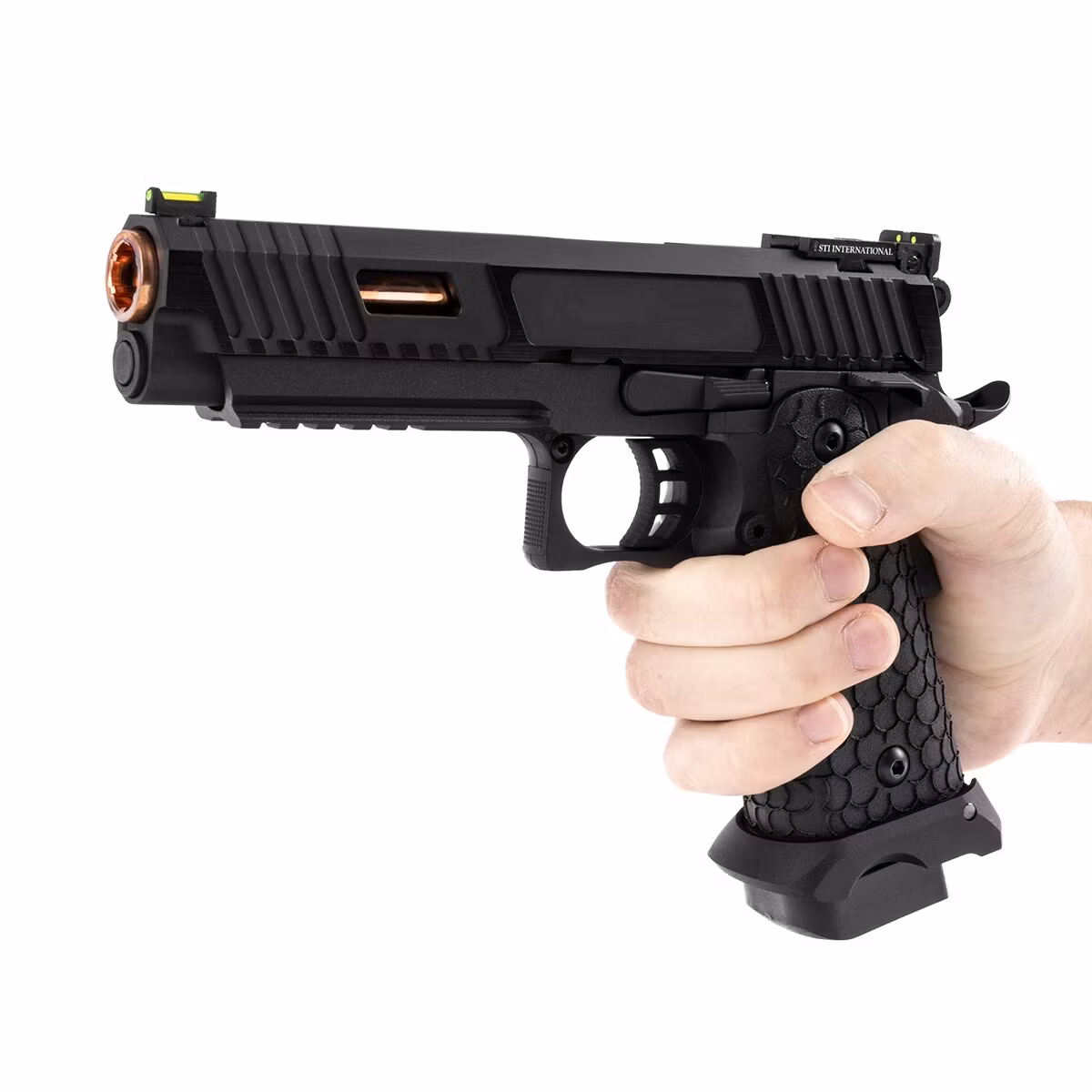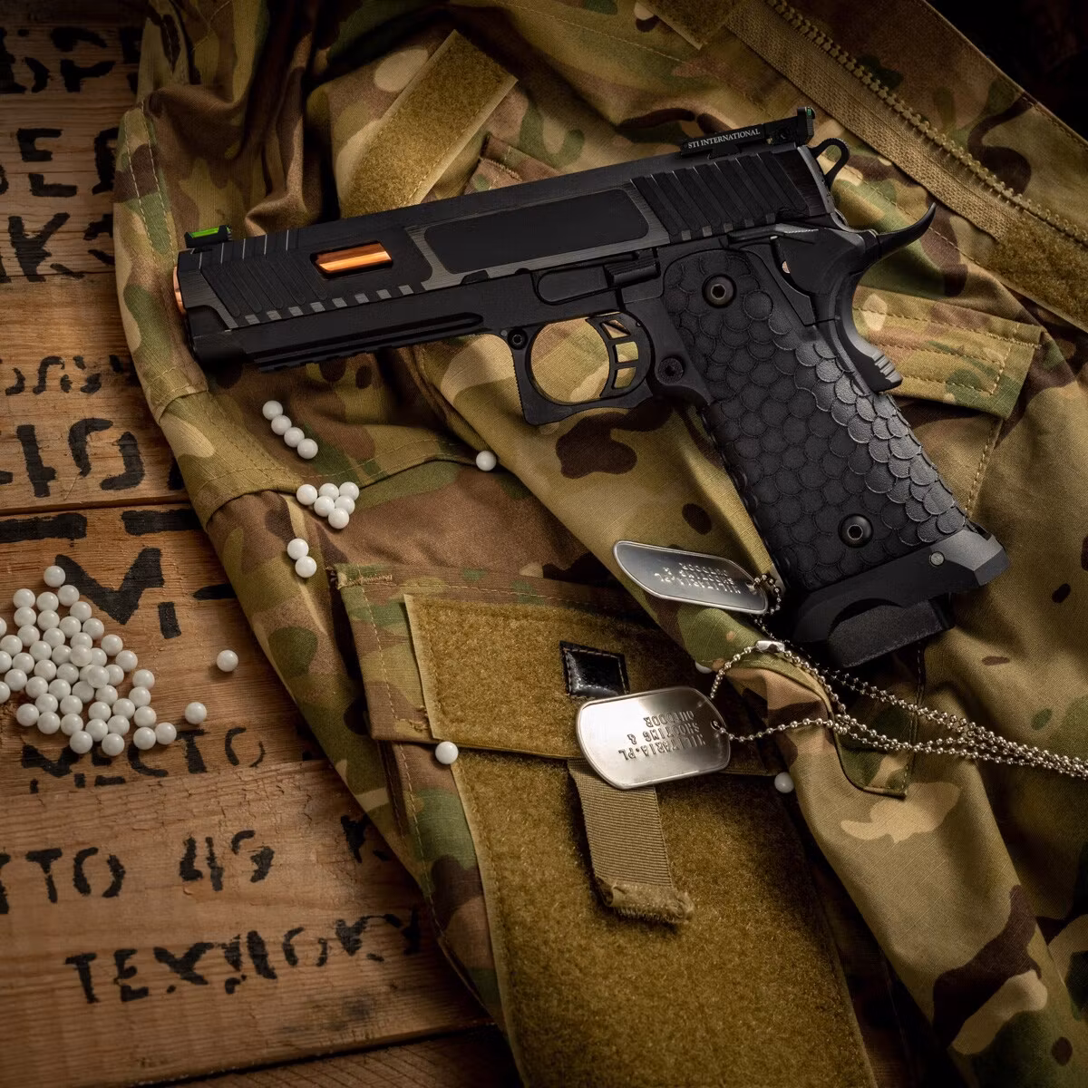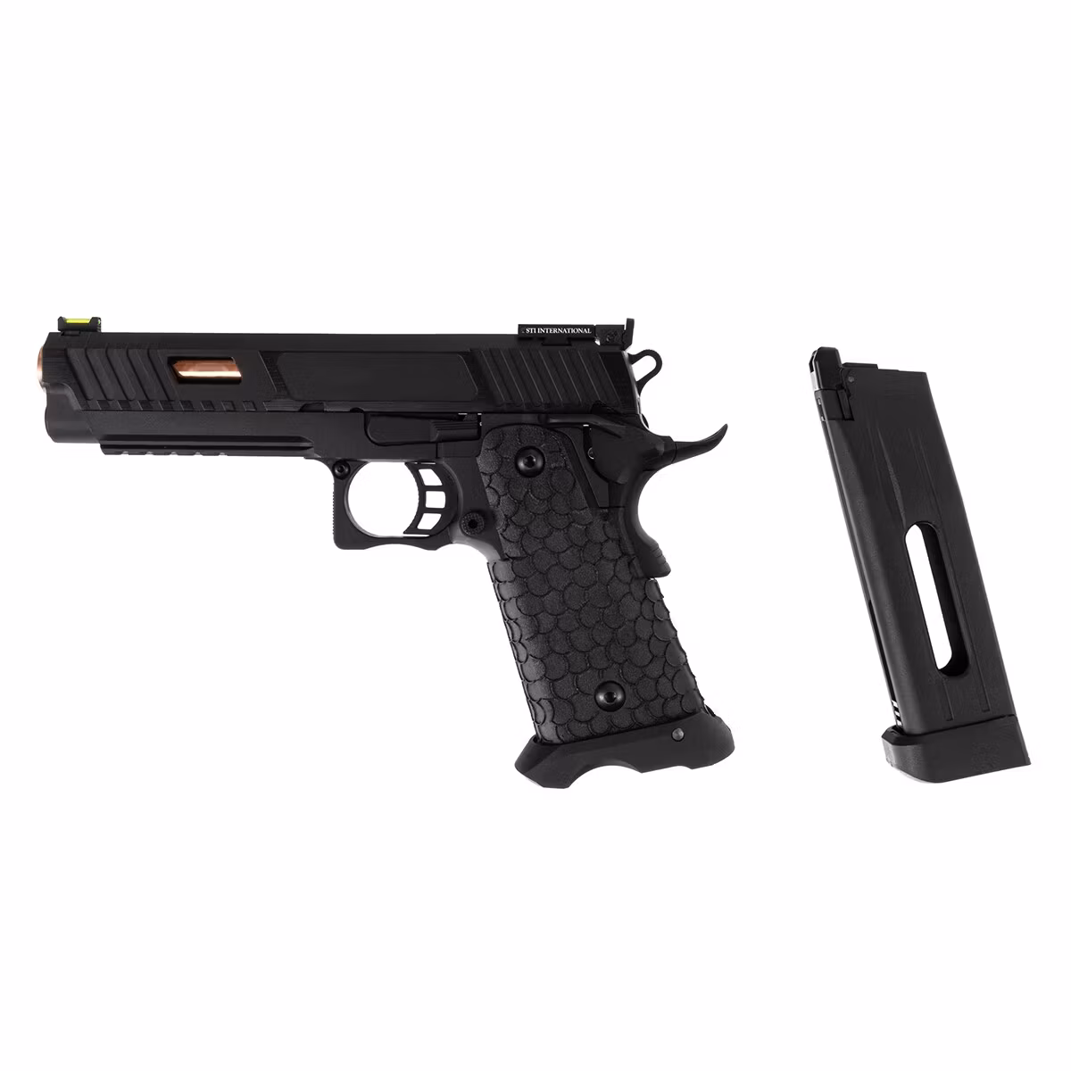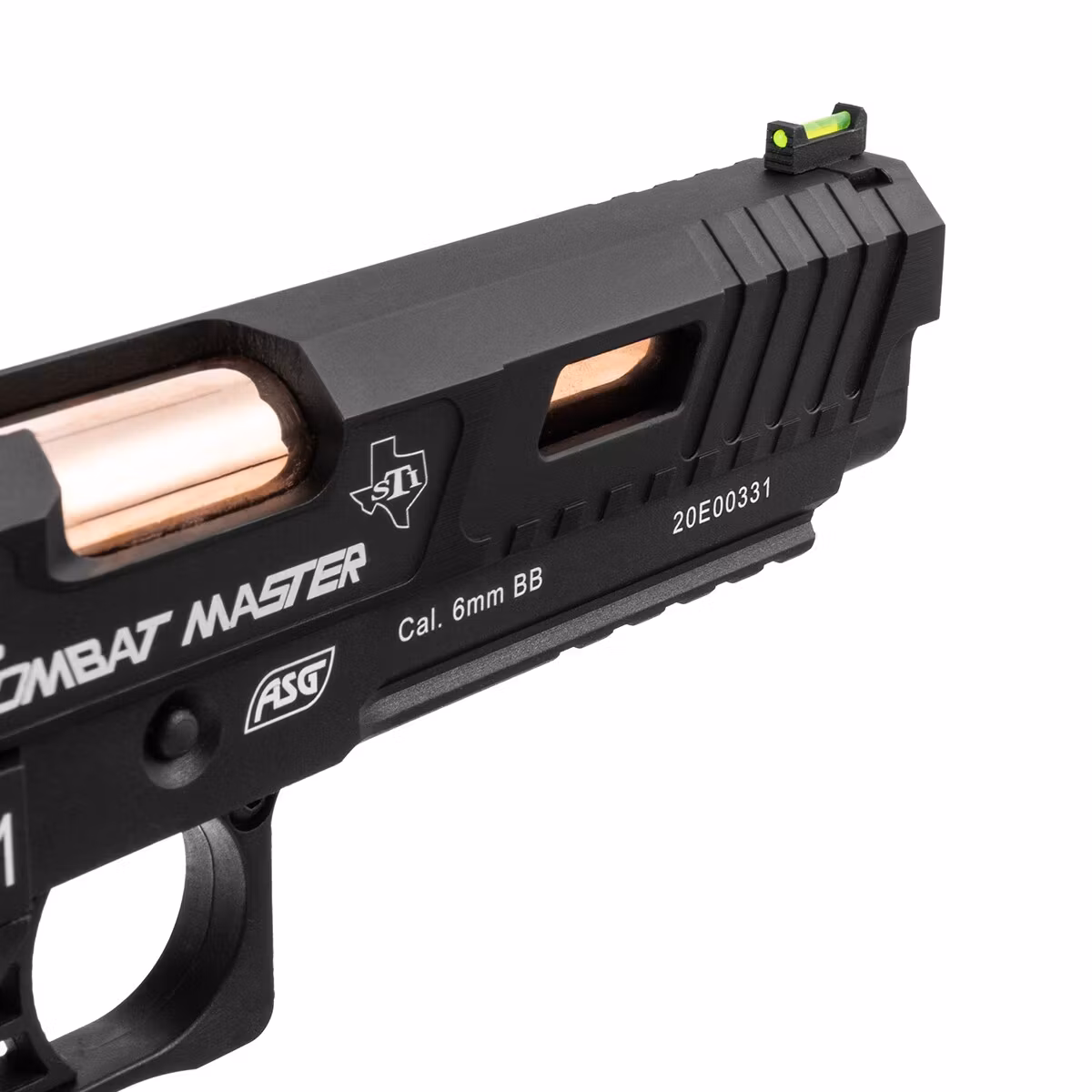 Licensed gas replica of Combat Master pistols. The replica is based on the classic M1911 model design and has undergone a series of modifications typical for firearms used in modern sport shooting.