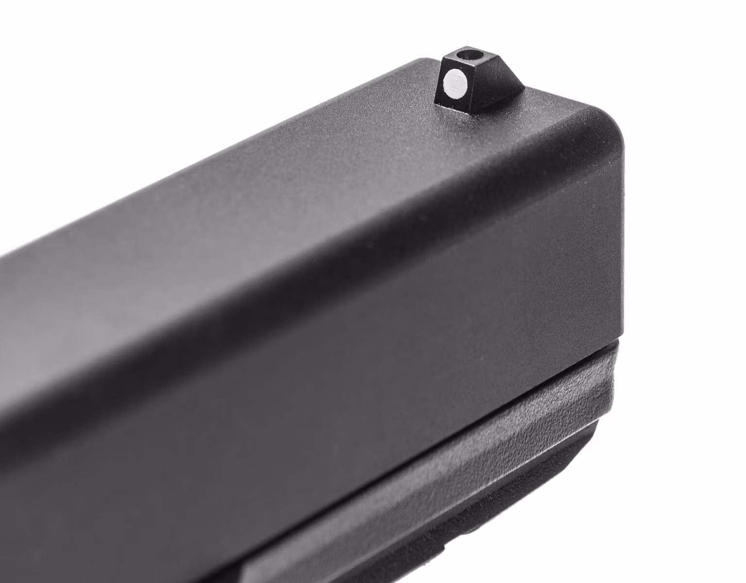 Thanks to the Blow Back system, each pull of the trigger causes a rearward recoil of the breech, which tightens the cock, and the forward return movement introduces the ball into the barrel, from where, at a speed of 330 FPS it will be fired when the trigger tongue is pulled back. In a situation where there are no bullets in the magazine, the lock remains in the rear position. Its release is possible when the breech drop lever is pulled down.