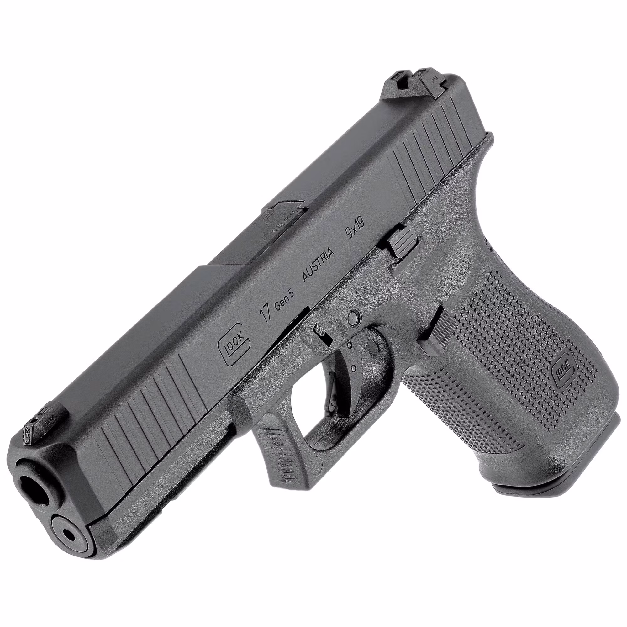 Gas replica of the world's most popular pistol - Glock 17 gen.5. It is made of metal and plastic. The frame of the pistol is made of plastic while the slide, outer barrel, and magazine are made of metal. Licensed Glock manufacturer's marks are applied on the pistol and magazine.