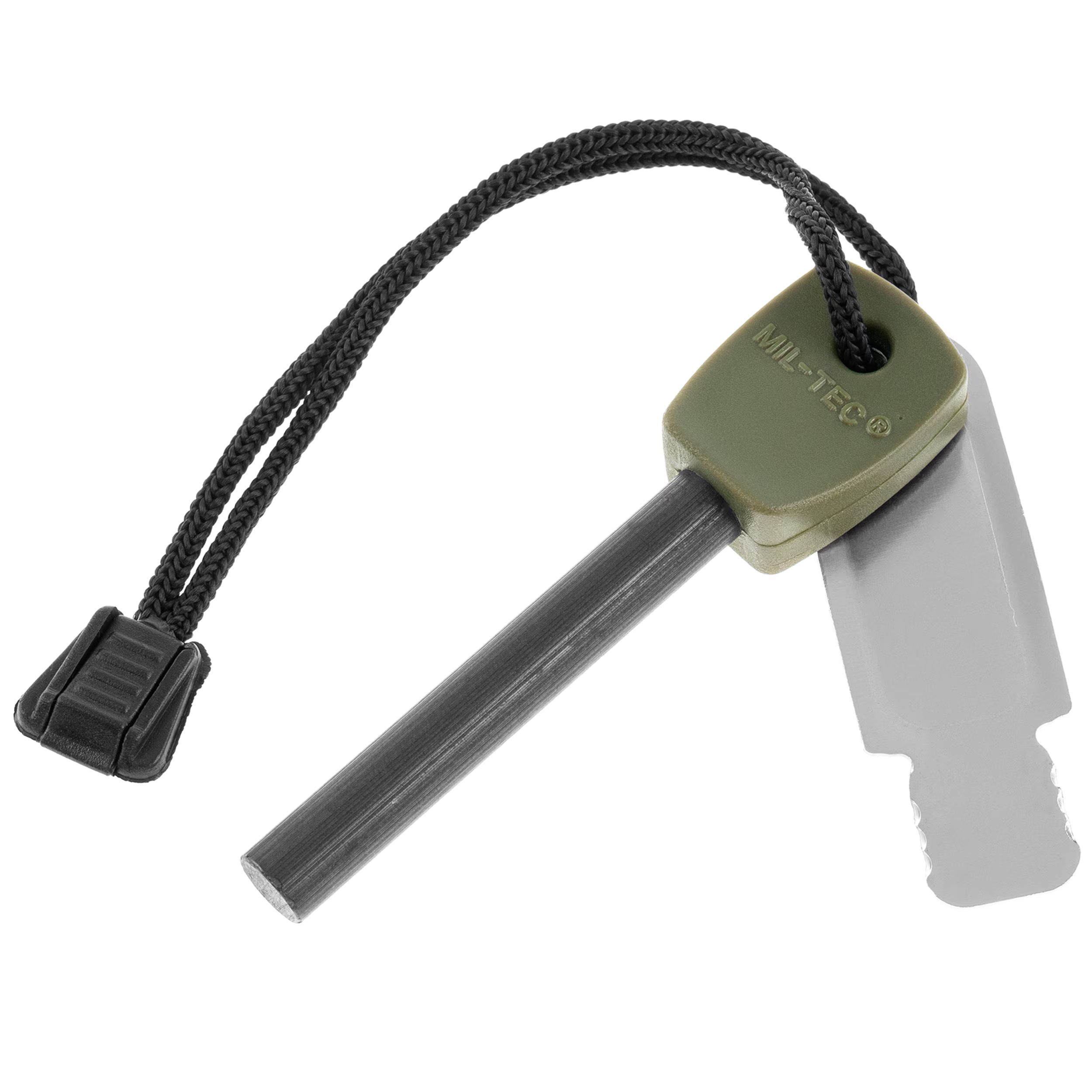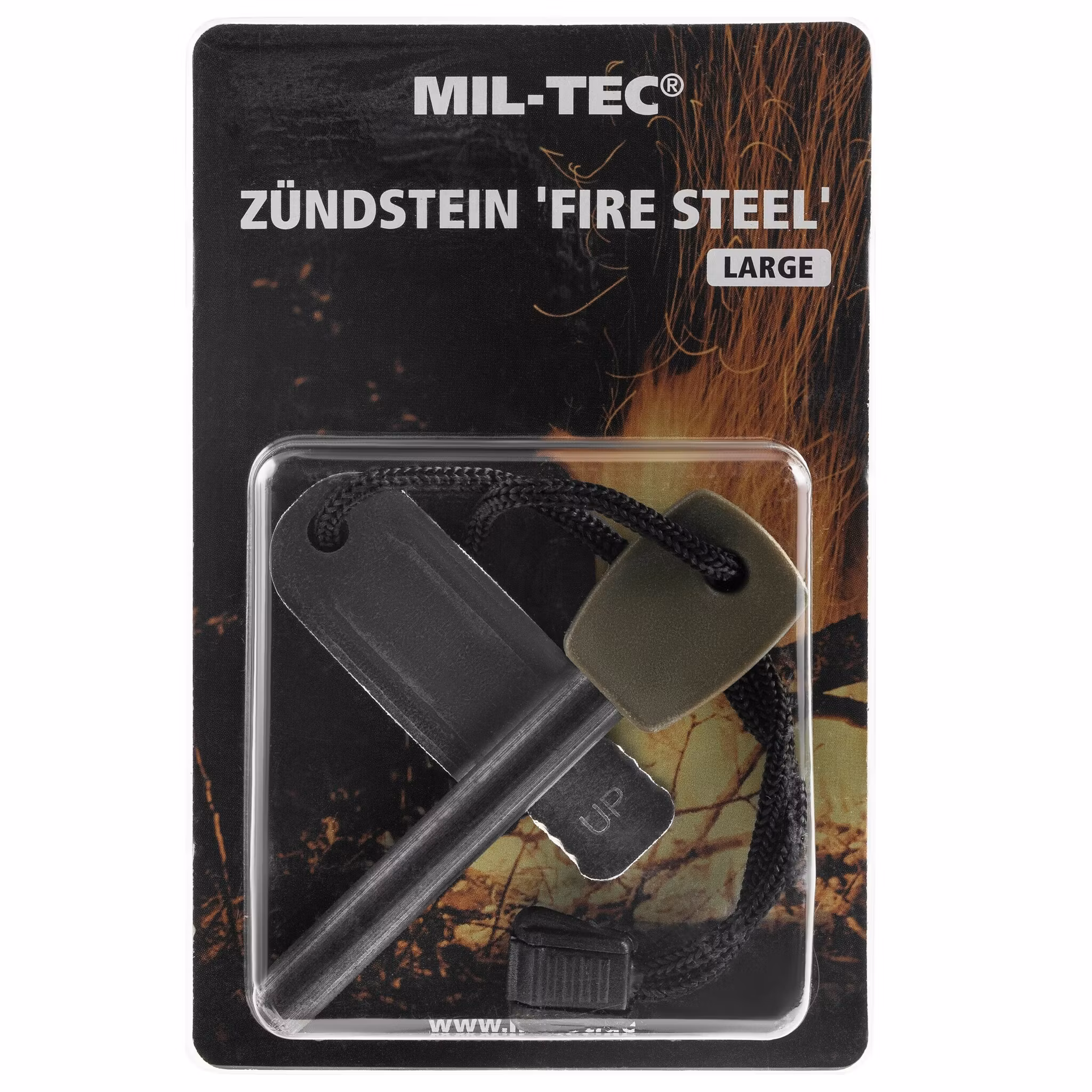 Firesteel with a 9 mm diameter ferrocerium rod that gives a large sheaf of sparks at 3000 degrees C. It works in harsh atmospheric conditions such as rain and wind and at high altitudes. With the help of the firesteel, you can light, for example, a gas stove, a tourist stove or a campfire, which is a source of heat and allows you to prepare a meal away from home.