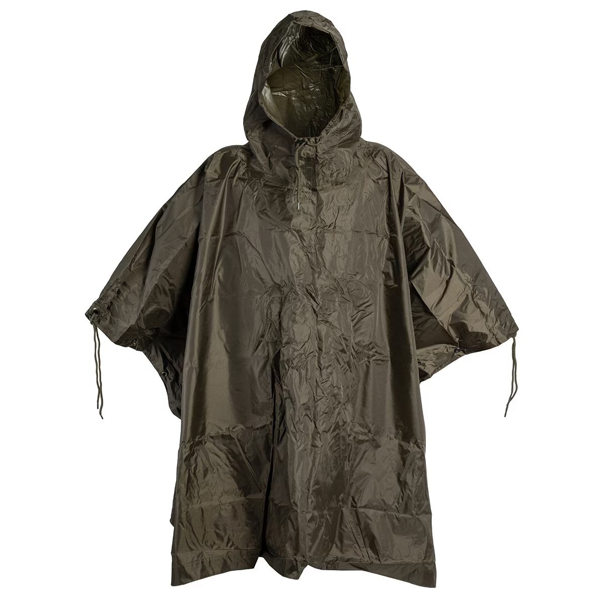 Mil-Tec rainproof, quick-drying poncho, made of rip-stop polyester. It has press studs which enable to make sleeves or connecting two ponchos together. The hood is equipped with a cord adjuster. The great advantage of this poncho is its light weight and small size when folded – when compressed, the poncho fits into small bag.
