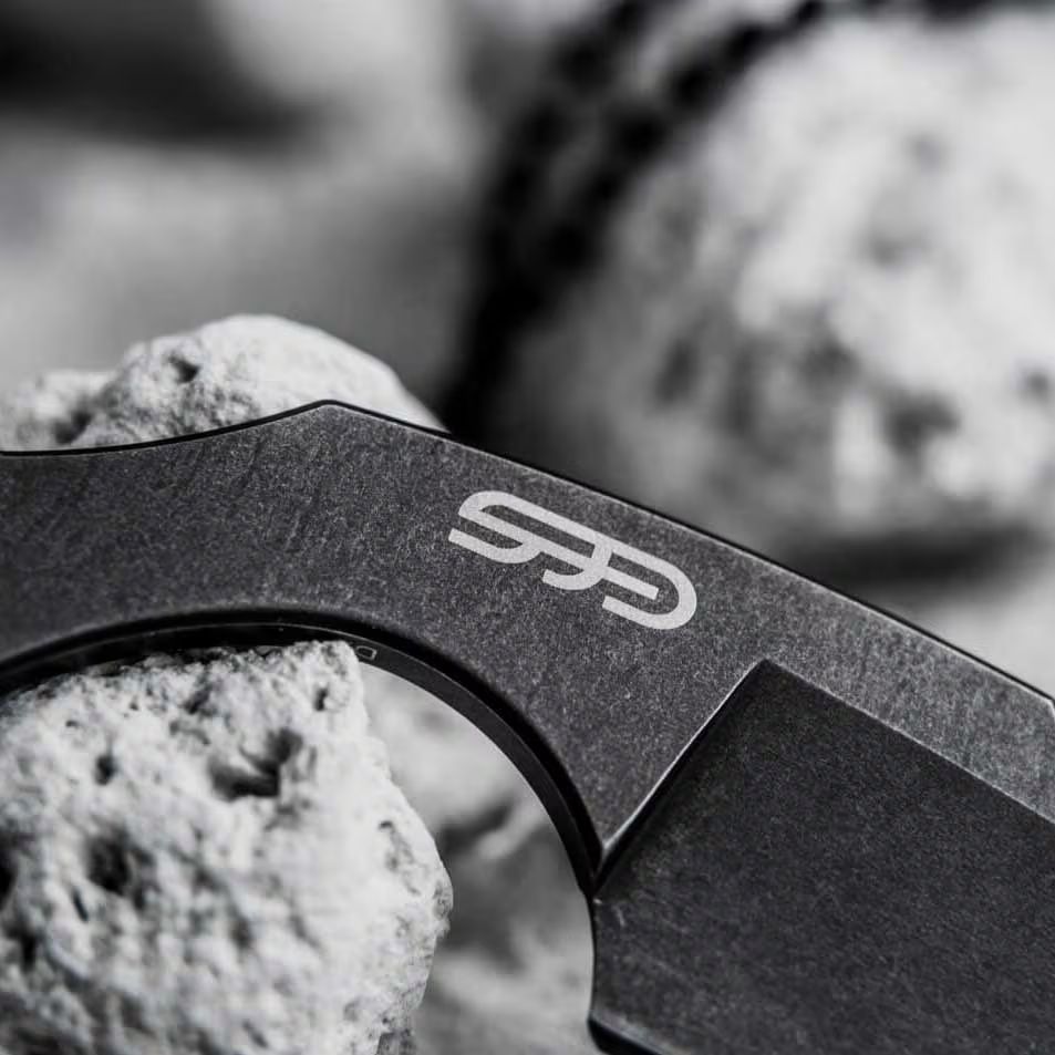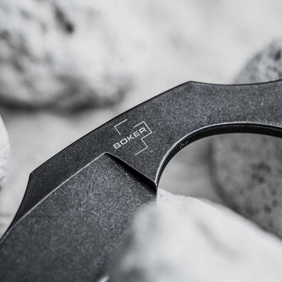 Light and compact knife type karambit designed by German knife designer Simon Frömel. The blade with a Hawkbill profile is made of high-carbon D2 tool steel, characterized by high abrasion resistance. The entire surface of the knife has been finished using the Black Stonewash method, giving it a dark matte effect. A notch is placed on the spine of the blade for thumb placement, making it easier to guide cuts.