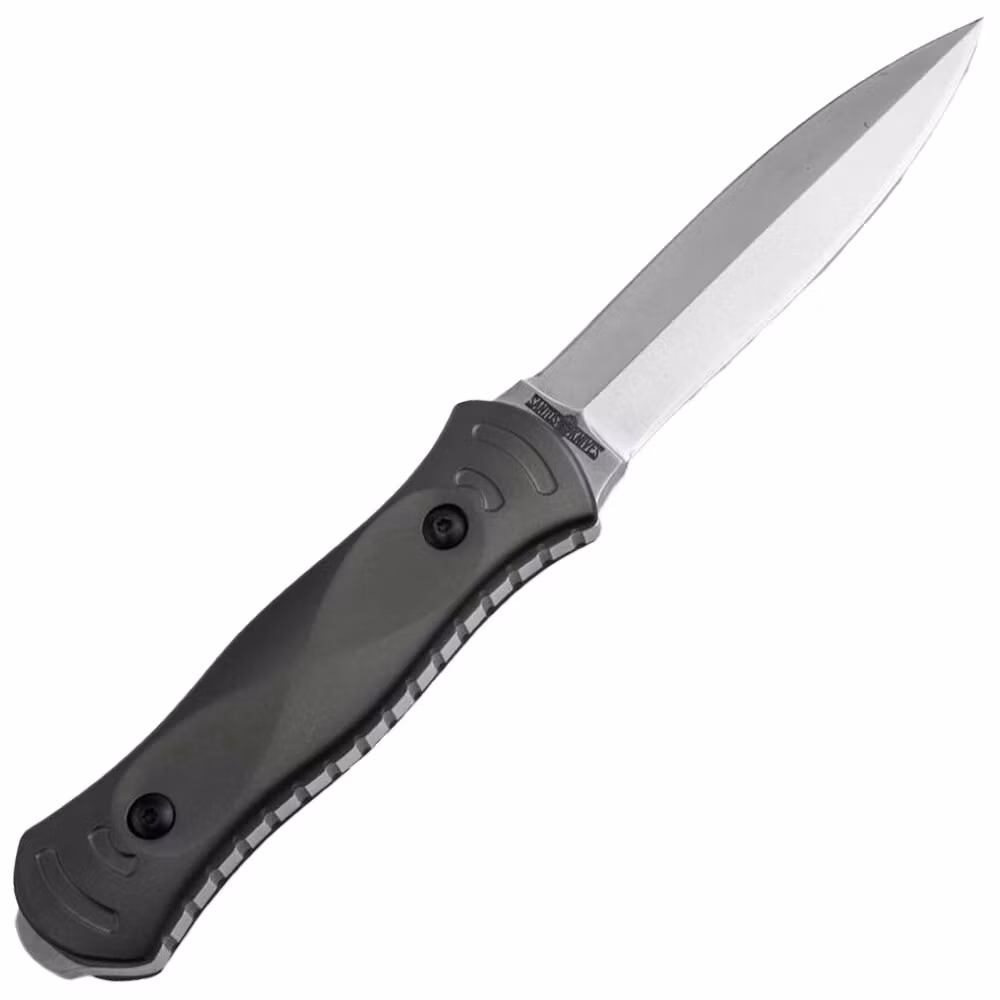 The blade, sharpened on both sides, is made of stainless steel 440B and finished with a stonewash method. The 440B steel from which the blade is made is characterized by its aggressive cutting ability and satisfactory wear resistance.