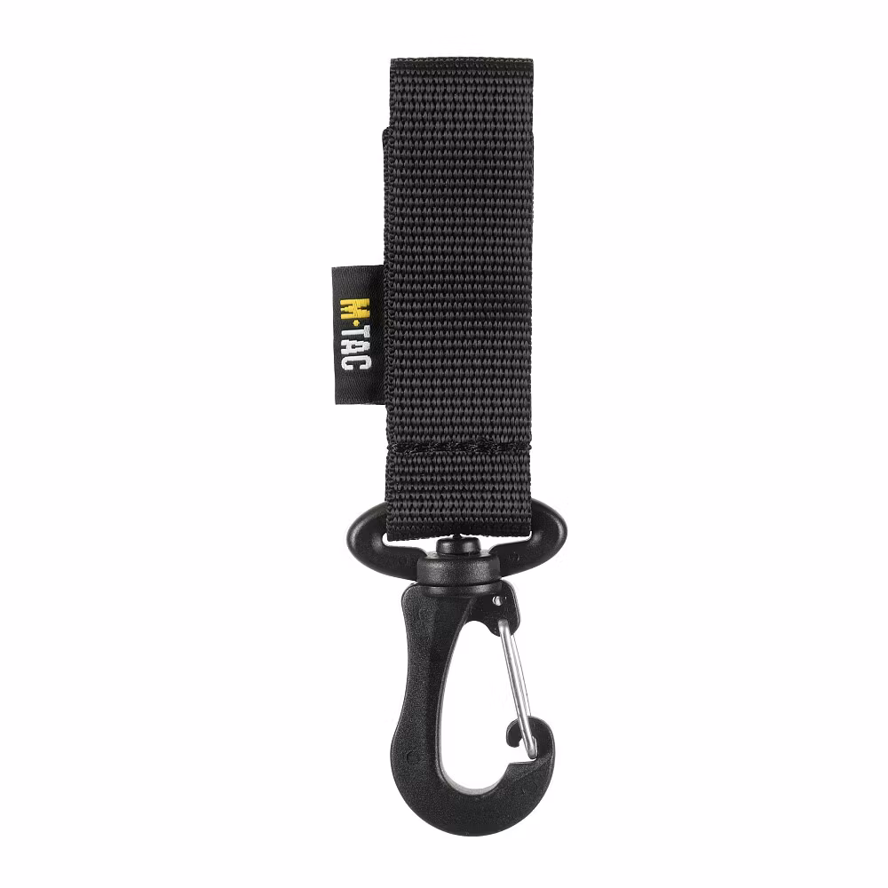 Secured with Velcro strap made from Murdock tape compatible with MOLLE system, equipped with composite-metal carabiner. When attached to a belt, vest, or backpack, it allows for convenient carrying of accouterment elements or other accessories and their quick detachment. It also works great as a keychain.