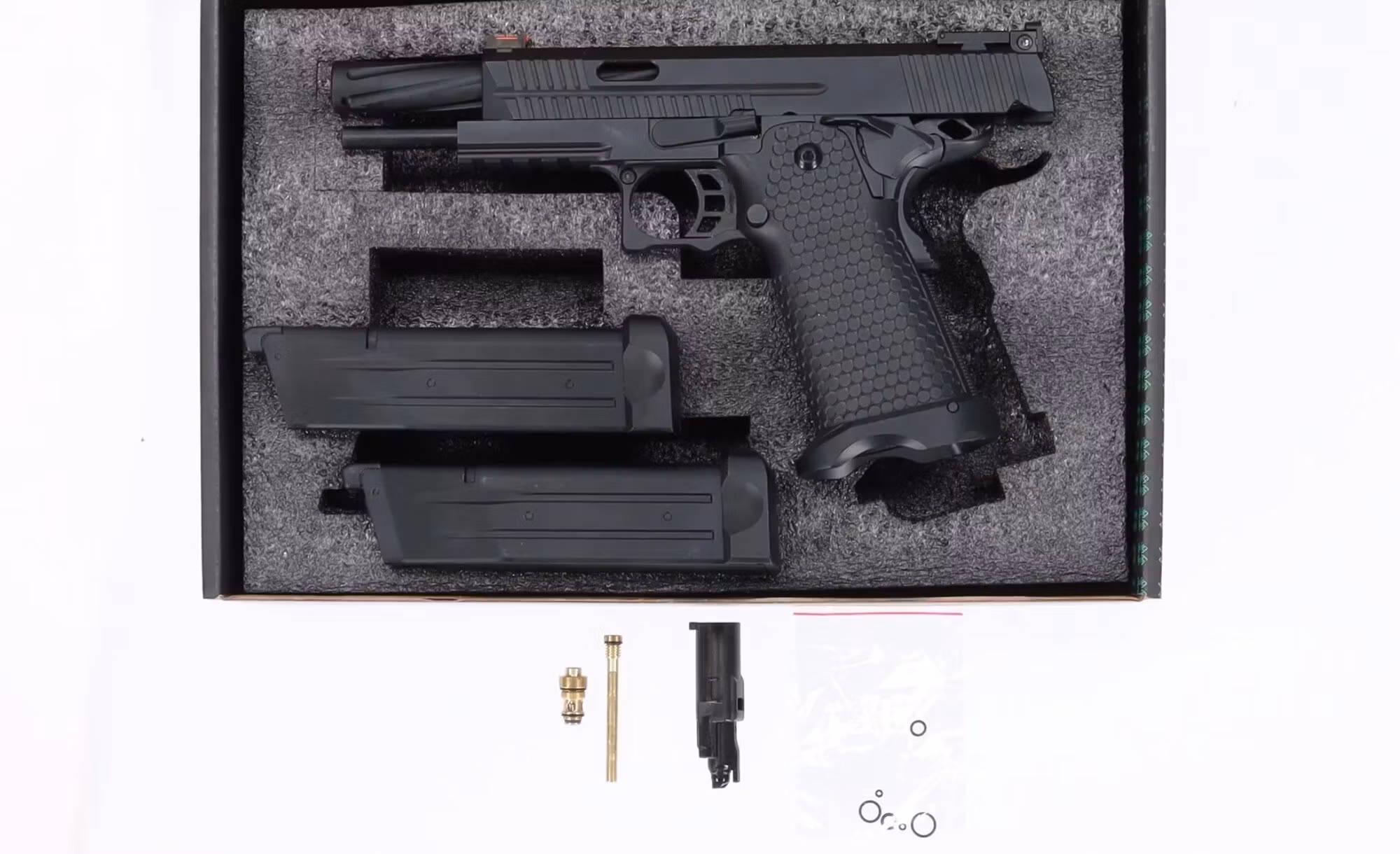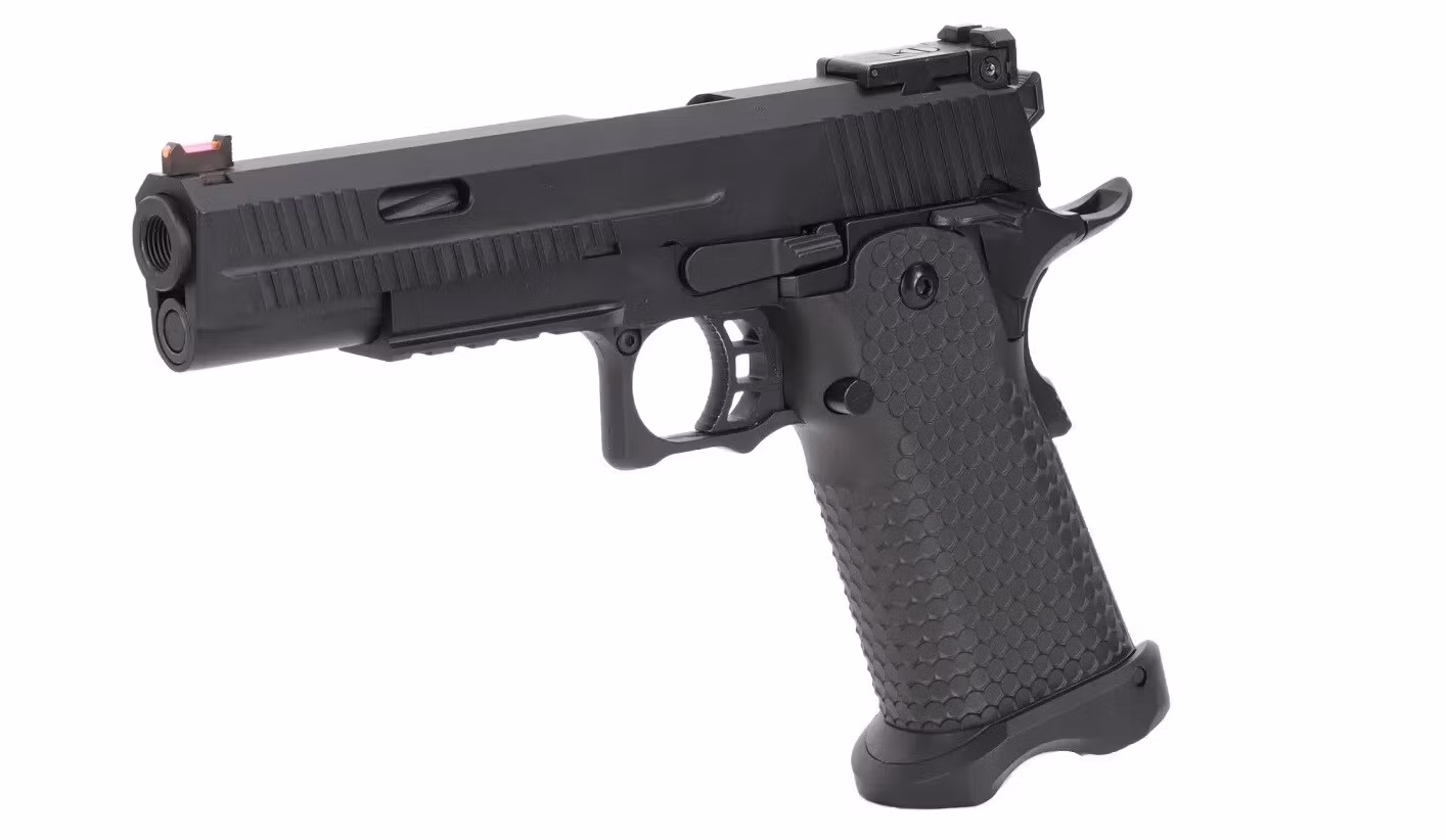 The model is powered by Green Gas, which results in high shot repeatability and a muzzle velocity of 320 FPS. The Blow-Back mechanism simulates the slide recoil, giving the replica dynamic shooting behavior and increasing operational realism. The Hop-Up system improves shot precision and range.