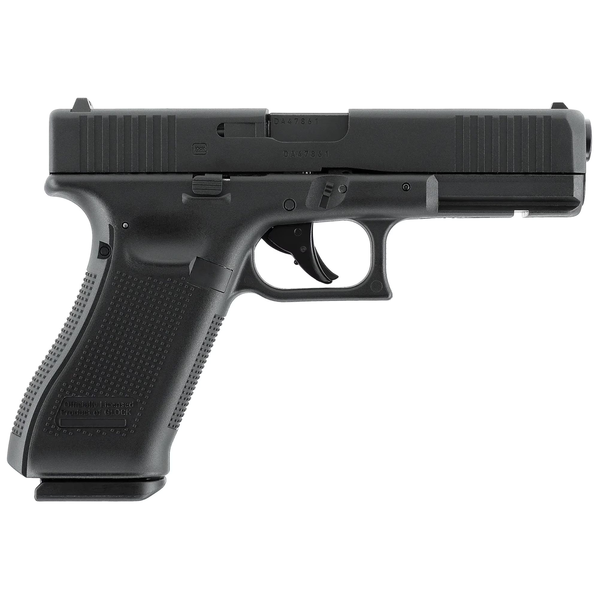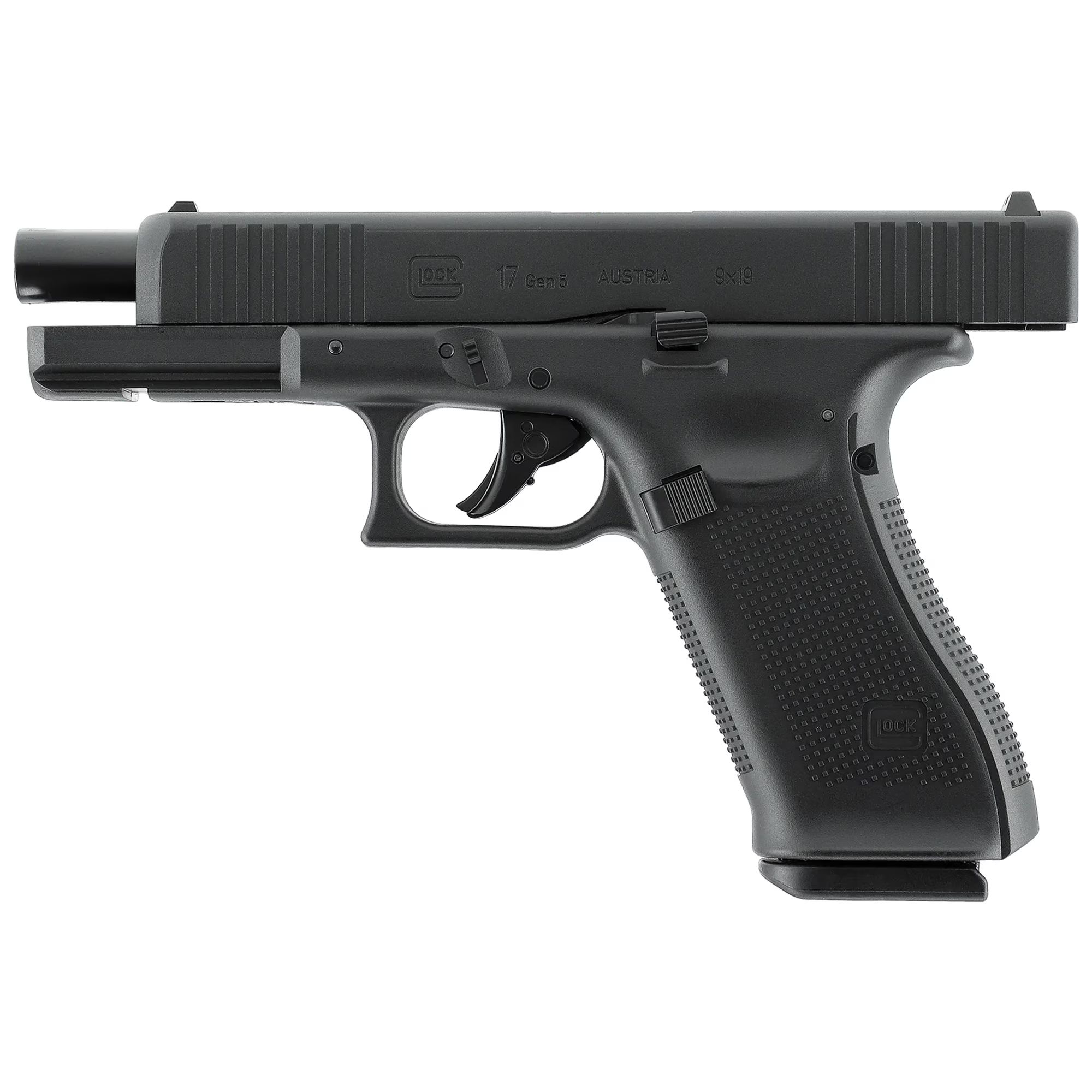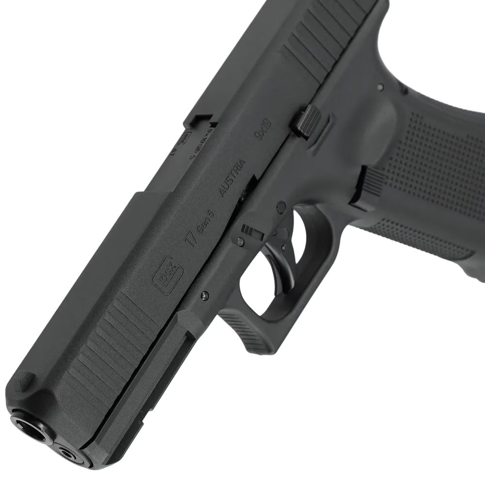 Gas replica of the world's most popular pistol - Glock 17 gen.5. It is made of metal and plastic. The pistol's frame is made of plastic, while the slide, outer barrel, and magazine are made of metal. Licensed markings have been applied to the pistol and magazine licensed markings of the firearm original manufacturer.