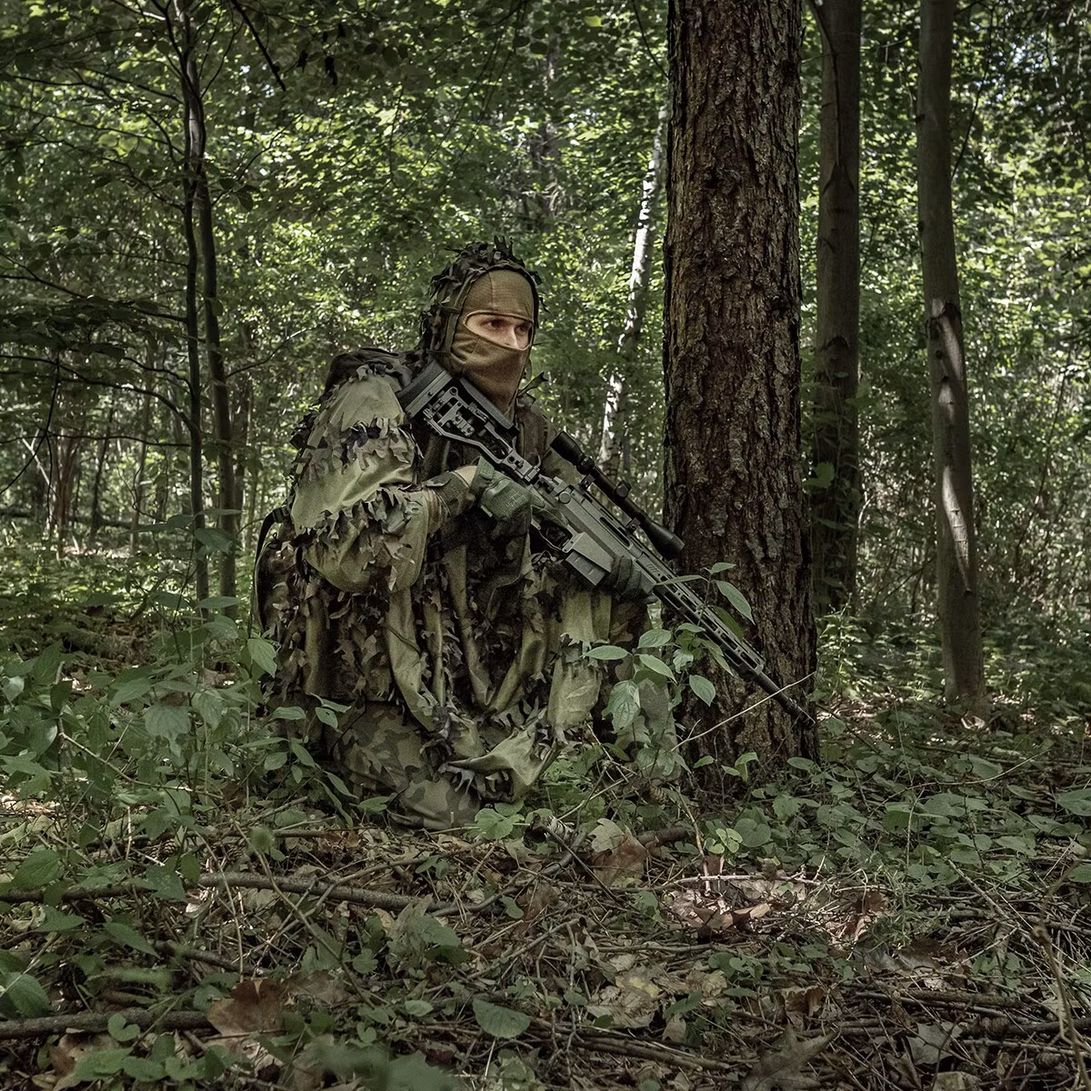 Ghillie poncho från Helikon-Tex. Använd ponchon som den är eller bygg ihop med flera och skapa ett stort camoöverdrag.