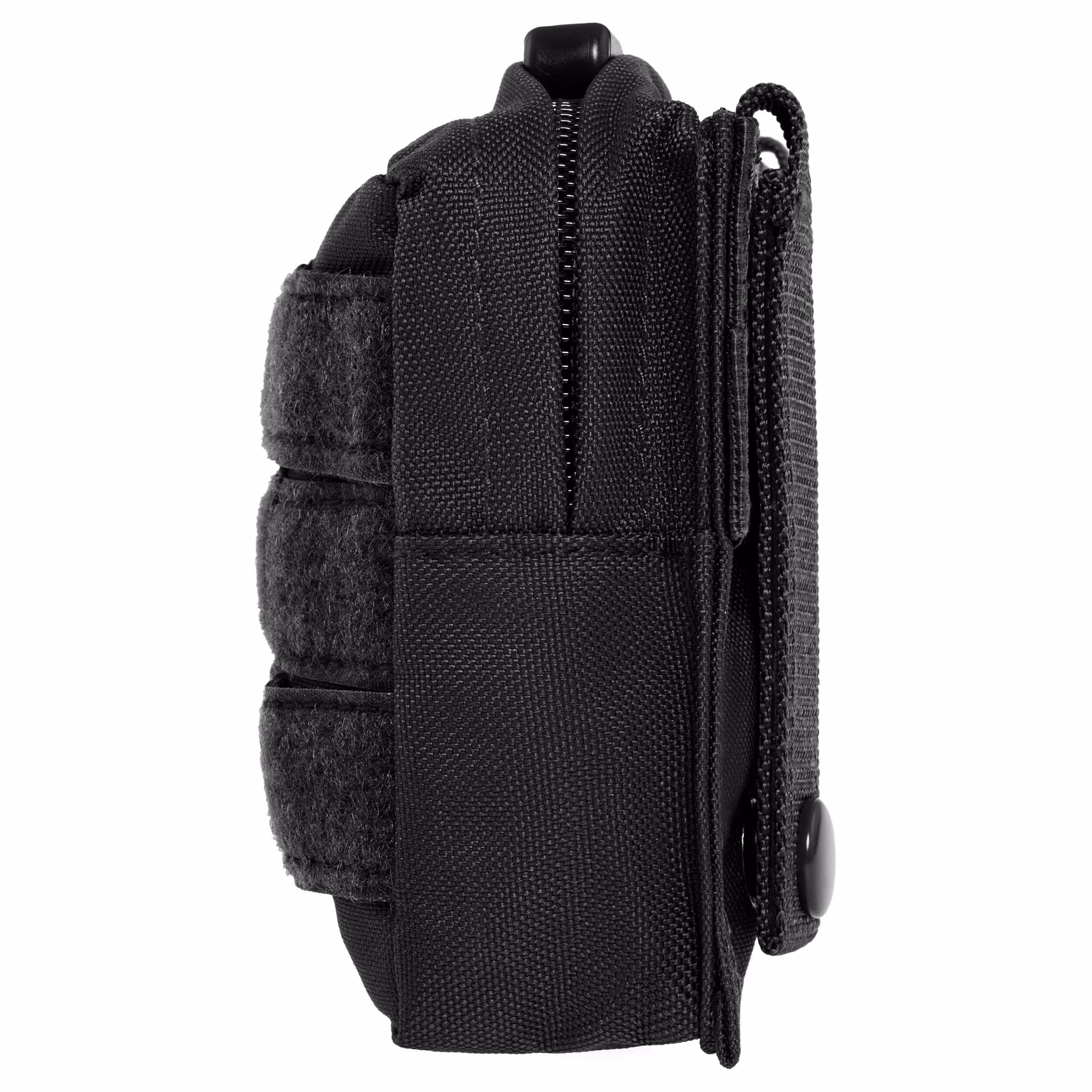 On the front wall of the pocket there are MOLLE system tapes covered with a layer of hook-and-loop, allowing you to attach a patch or other accessories. Mounting to the belt is done by means of two button-fastened loops, compatible with belts up to 8 cm wide.
