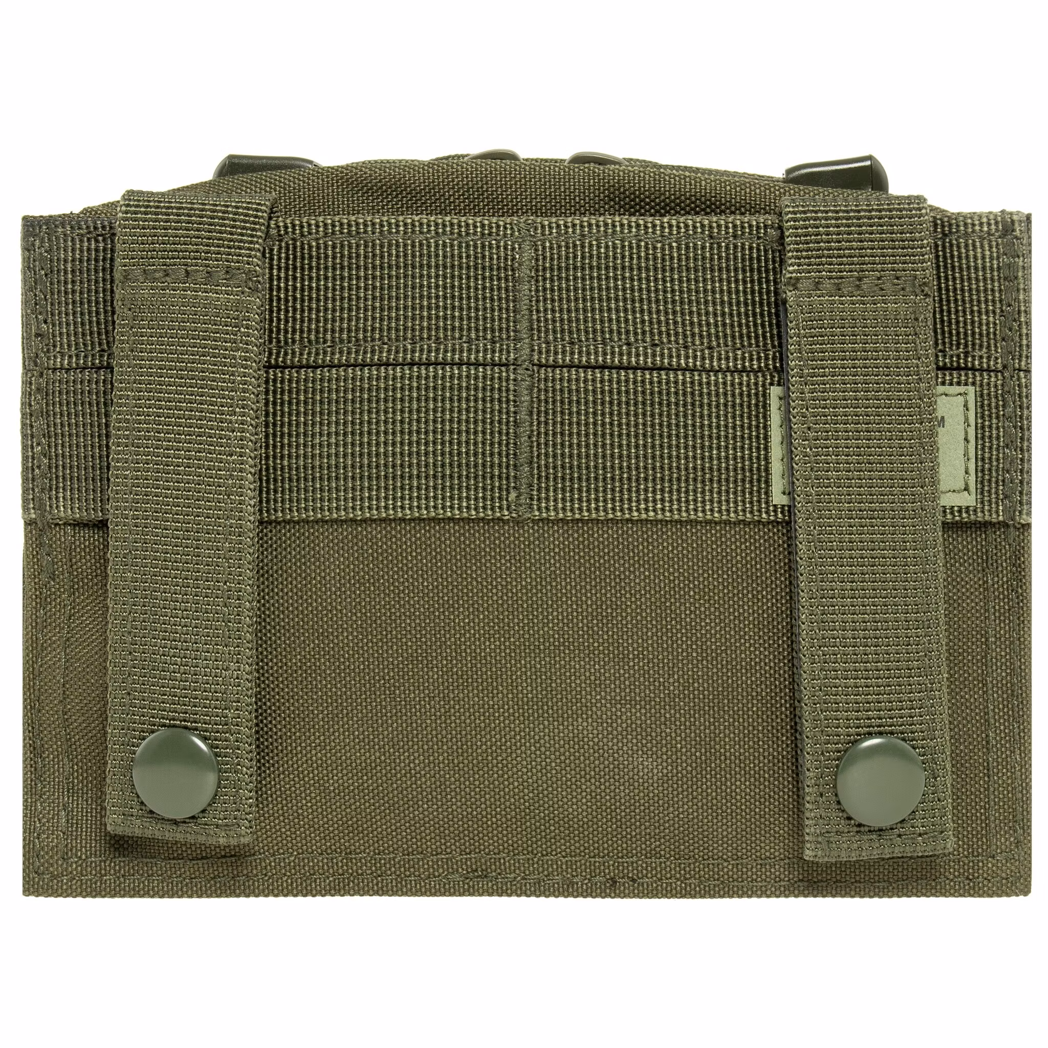 On the front wall of the pocket there are MOLLE system tapes covered with a layer of hook-and-loop, allowing you to attach a patch or other accessories. Mounting to the belt is done by means of two button-fastened loops, compatible with belts up to 8 cm wide.