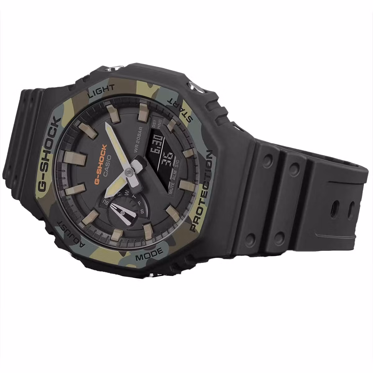 The use of the G-Shock system and a carbon-reinforced case increases resistance to shocks and mechanical damage. The mineral glass covering the dial has a Mohs hardness level of 5.