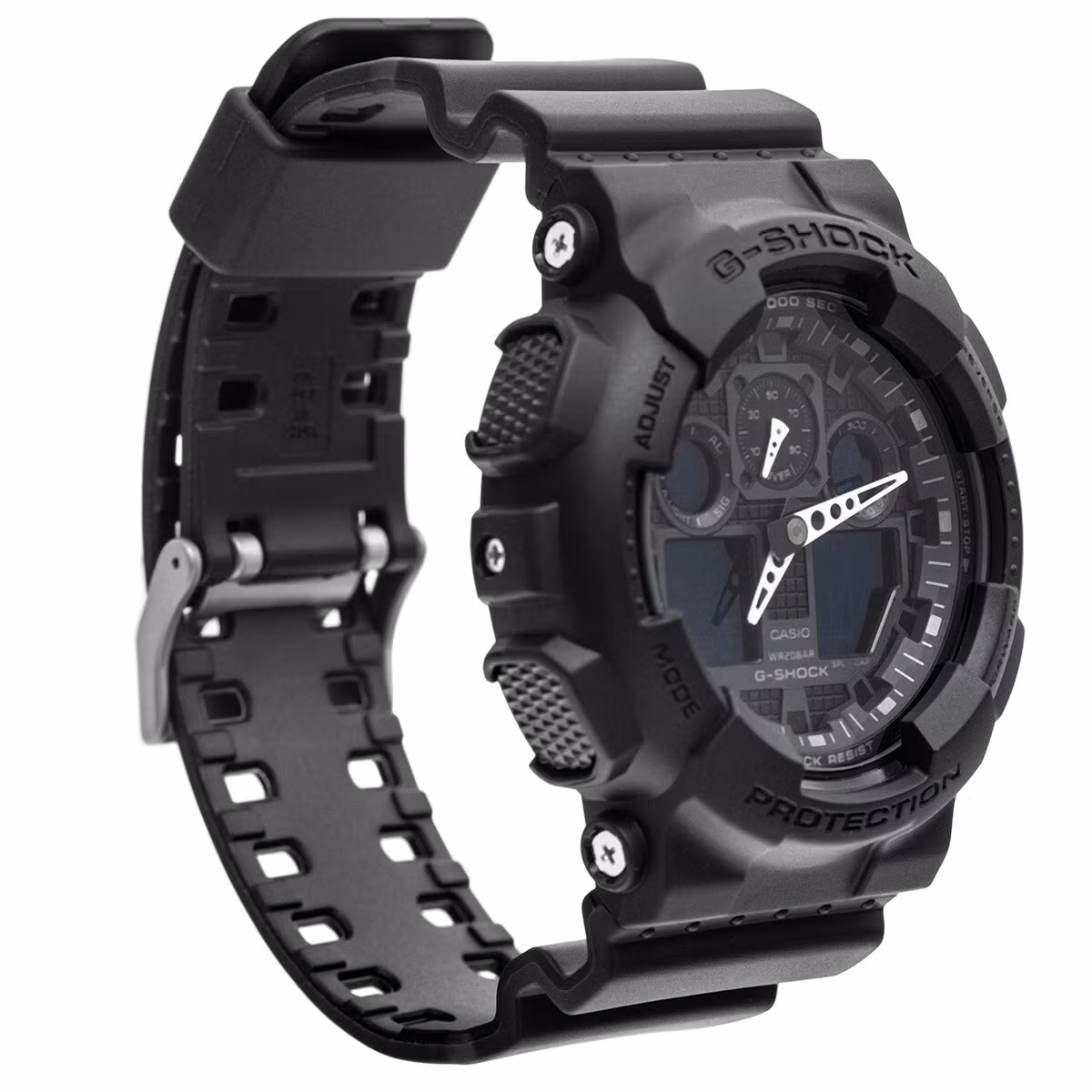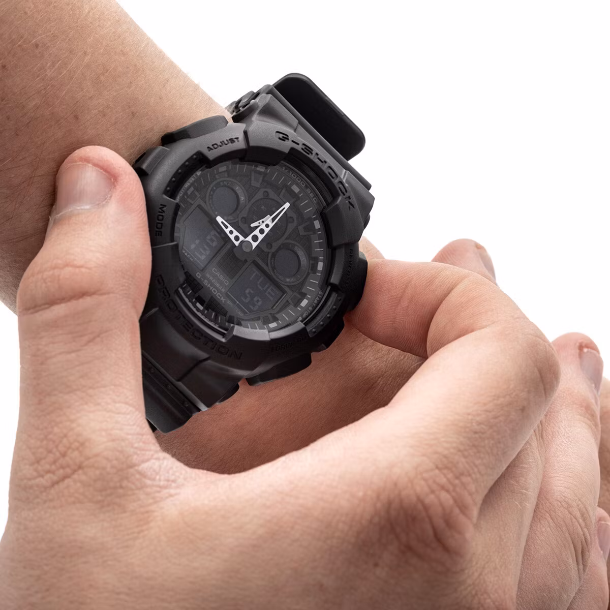 The use of the G-Shock system and a carbon-reinforced case increases the watch’s resistance to shocks and mechanical damage. The mineral glass covering the dial has a Mohs hardness level of 5.