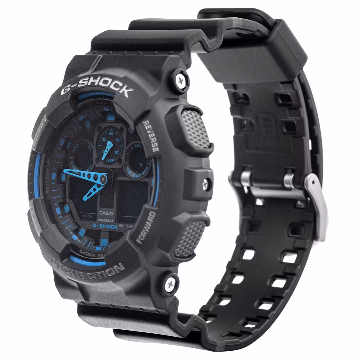 Water-resistant and shockproof sports watch with quartz movement. Equipped with Auto-LED backlight. The hands are coated with a fluorescent Neobrite layer, allowing time to be read in the dark. The analog-digital dial is protected by mineral glass with a Mohs hardness level of 5.