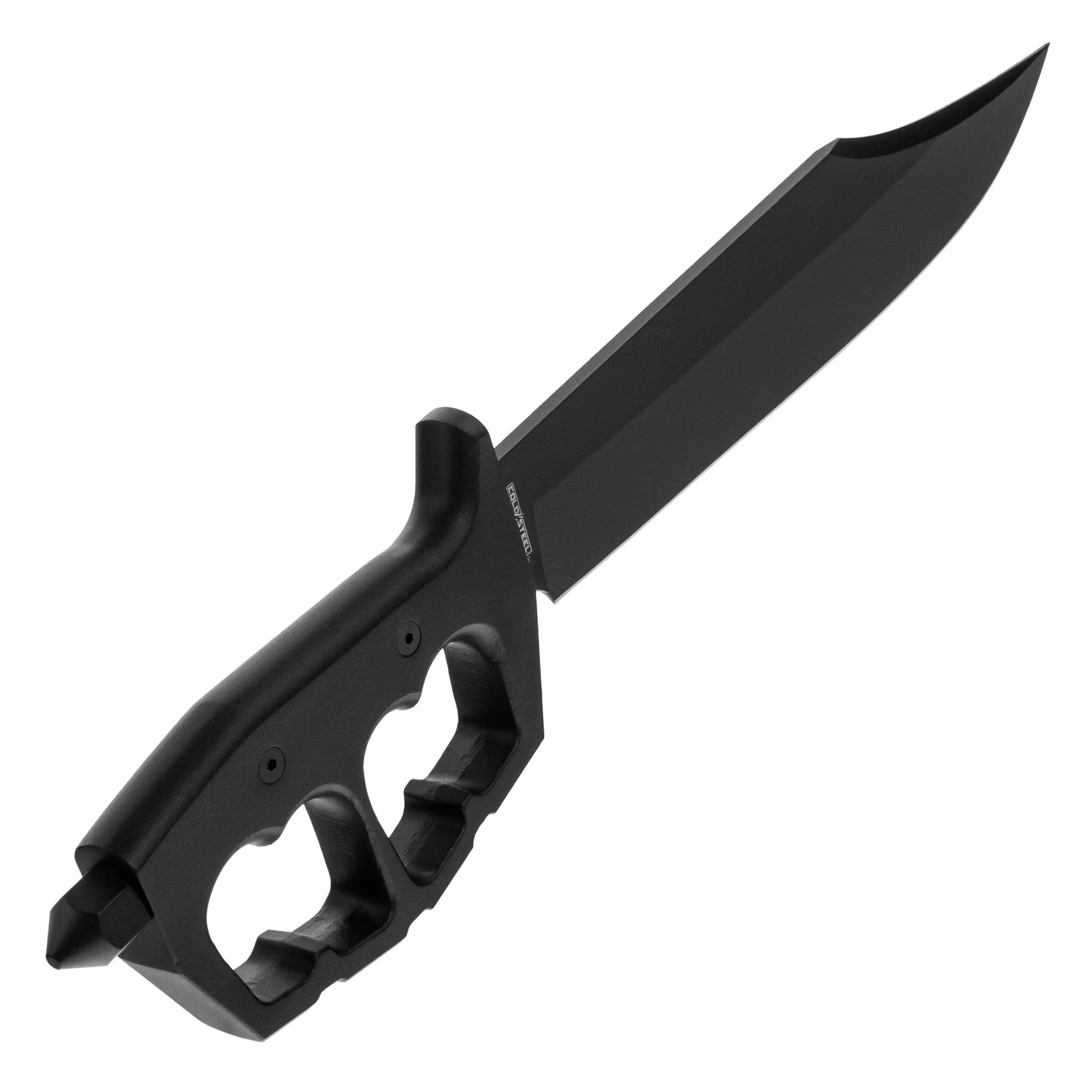 The Bowie-style blade is 266 mm long and 5 mm thick. It features a smooth cutting edge with a flat grind. The blade geometry ensures excellent cutting properties while maintaining its piercing ability. The blade is coated with a scratch-resistant Black Powder coating that protects against corrosion and eliminates unwanted glare.